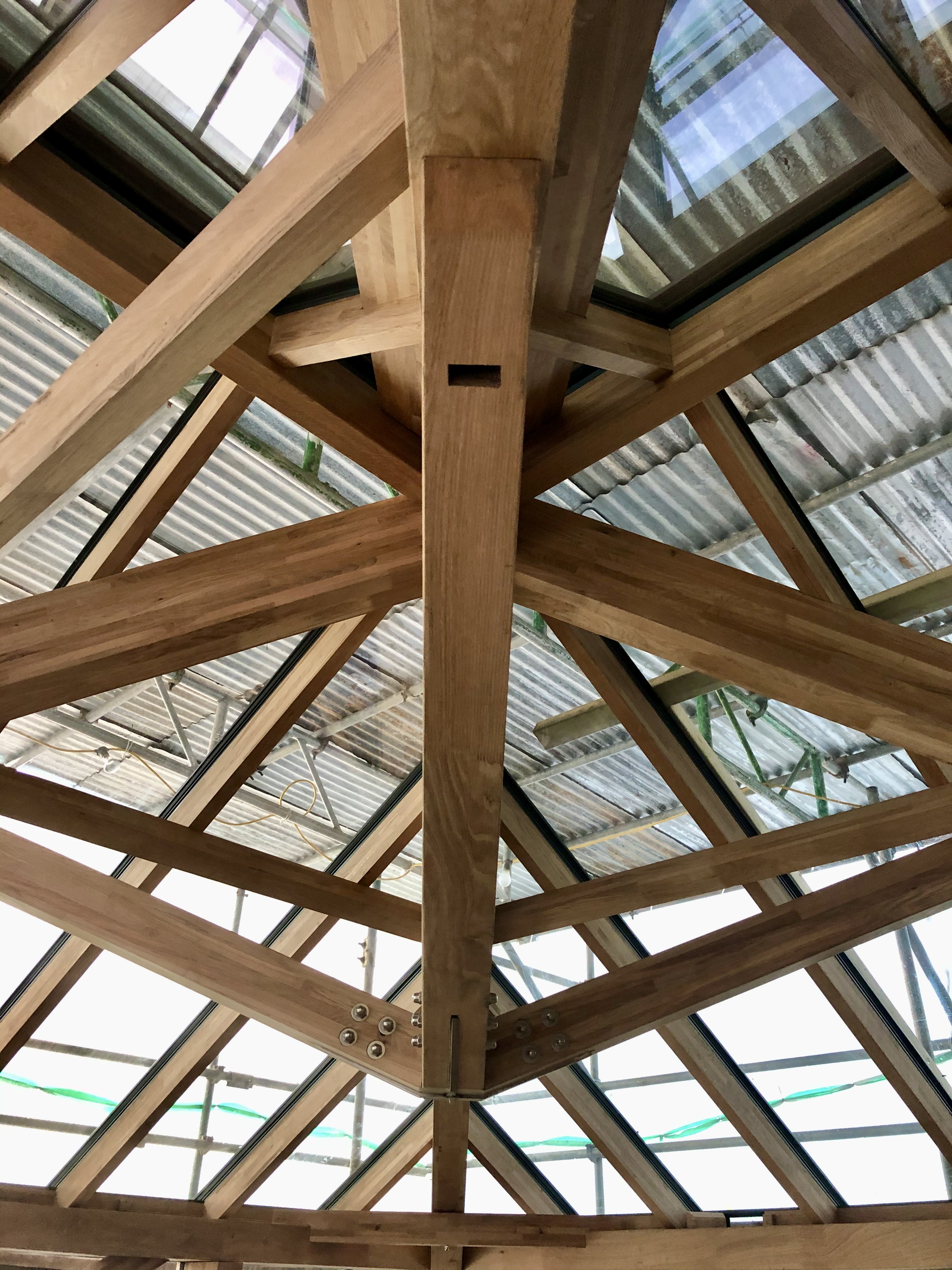 Rebuilding the existing conservatory provided the freedom to experiment with structure. Twisting the ridge created a dynamic architectural form, while responsibly sourced laminated oak and stainless steel form the framework. Wrapped in solar control glass, the space remains comfortable and inviting throughout the year.